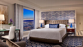 Assim que você entrar, você desfrutará de uma experiência visual como nunca antes. O resort é decorado com mais de 2.000 flores de vidro sopradas à mão que decoram o teto do saguão. Em termos de acomodações, você encontrará mais de 3.000 quartos localizados em 36 andares. Em 2004, o Bellagio adicionou a torre de spa, que fica ao sul da torre principal e oferece 33 andares com 935 incríveis quartos de hotel.